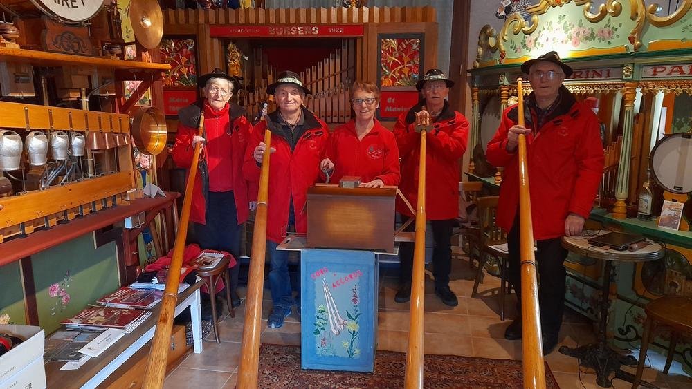 Ensuite seront proposés des morceaux avec les quatre cors, un accompagné de chant et un trio accordéon, cors des Alpes et orgue de barbarie.
